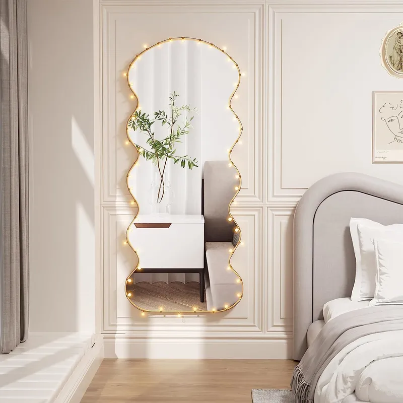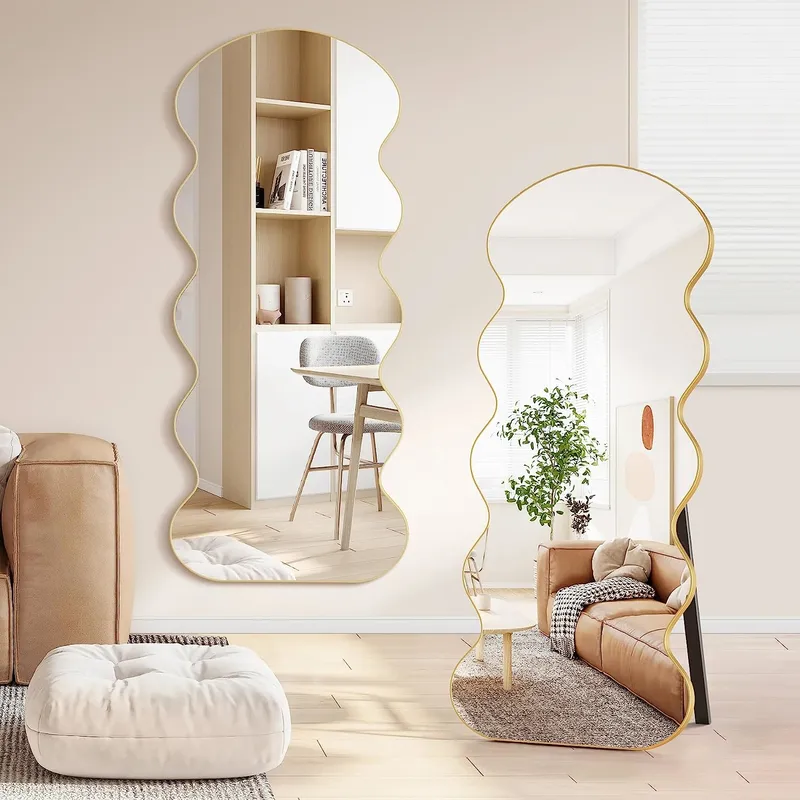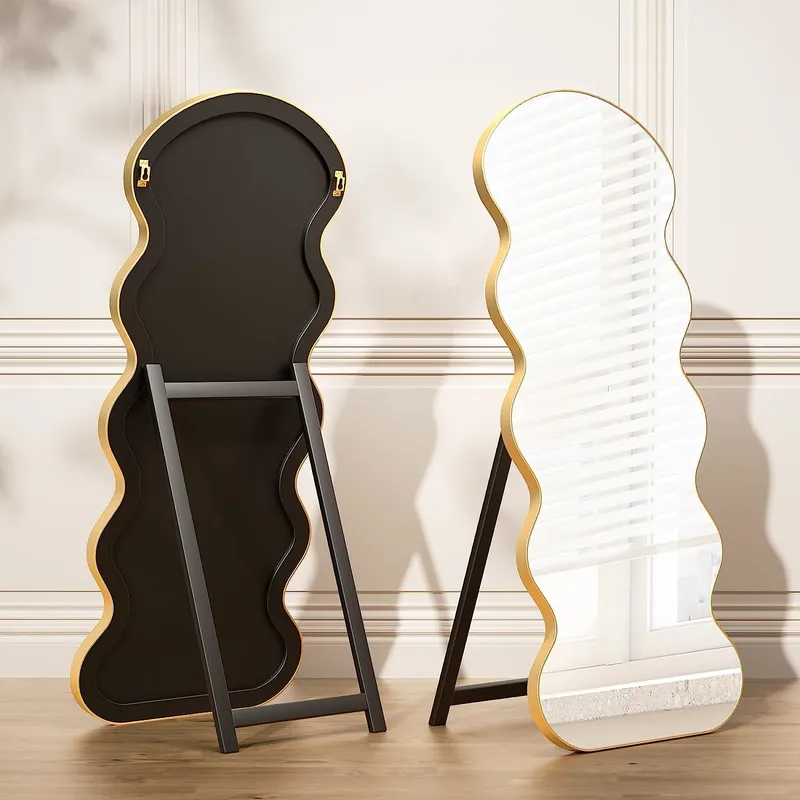 【Unique Design】This Aisundy wavy mirror is a irregular shape full length mirror for your bedroom as a decoration and filler. An arched floor mirror with gold aluminum frame and metal stands is just what you need.Simple waves create a modern feeling. The design will be the most eye-catching in your room. It’s not only a full length dressing mirror but also an ornament.