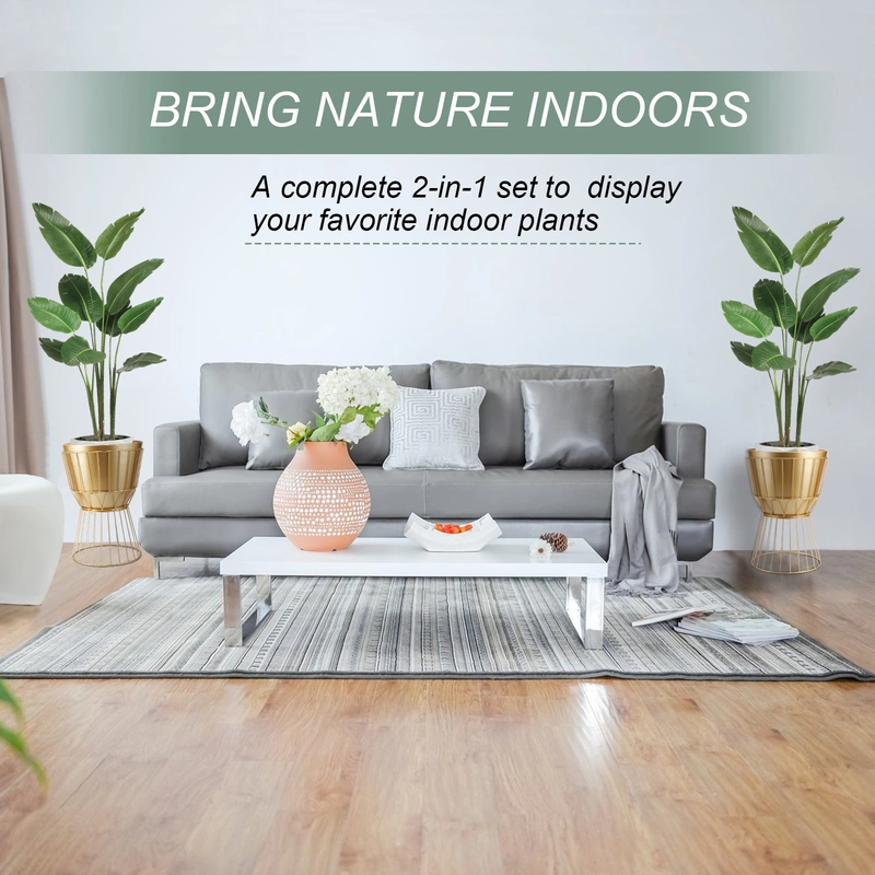 EASY TO ASSEMBLE- Our metal plant stand is a combination of two parts. Just press the upper part of the holder into the lower part, and put the flower pot into stand. Ready to use in 3 seconds.